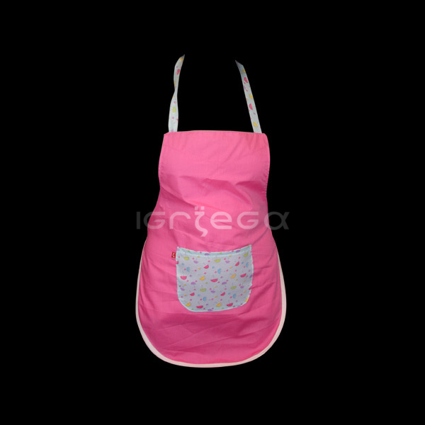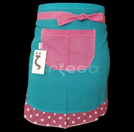 Telas varias con bolsillo y tiras combinadas; un bolsillo central; volados en el borde.