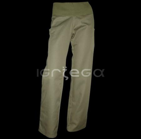 Gabardina de 6oz. o Poplin de algodón y polyester, colores varios, cintura de reeb, dos bolsillos laterales.